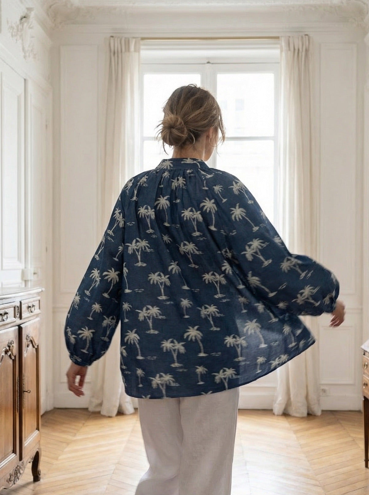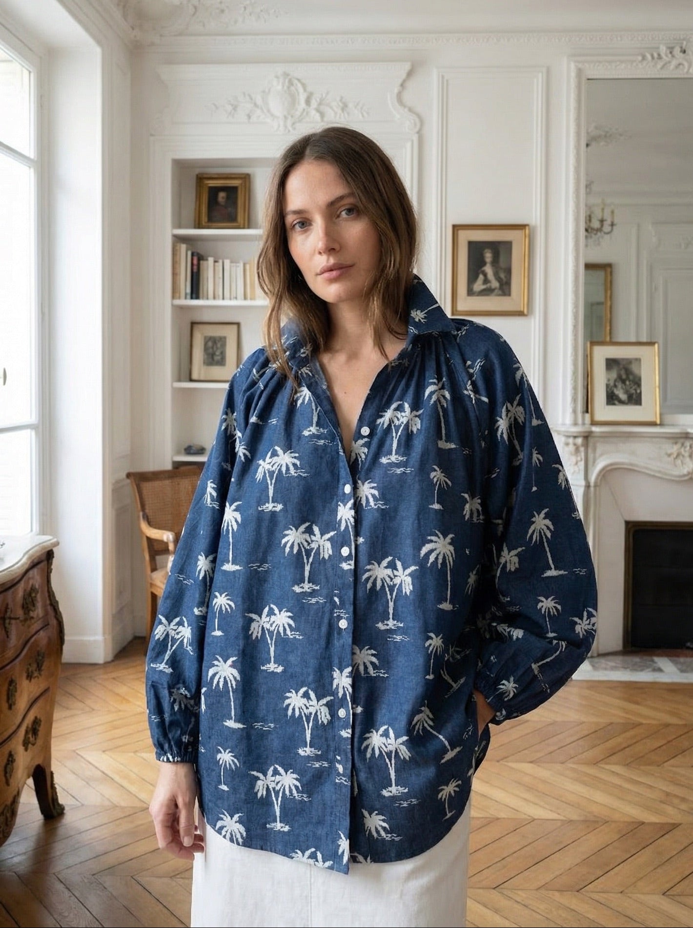 Effortlessly relaxed with a touch of coastal charm, this Palm Print Denim Shirt is your new go-to for easy, elevated styling. Crafted from soft, breathable denim, this piece features an exclusive palm tree print that brings a fresh, resort-inspired feel to your everyday wardrobe. The relaxed fit, classic collar, and button down front allow for endless styling. Wear it loose, tucked, or layered for that effortless boutique look.