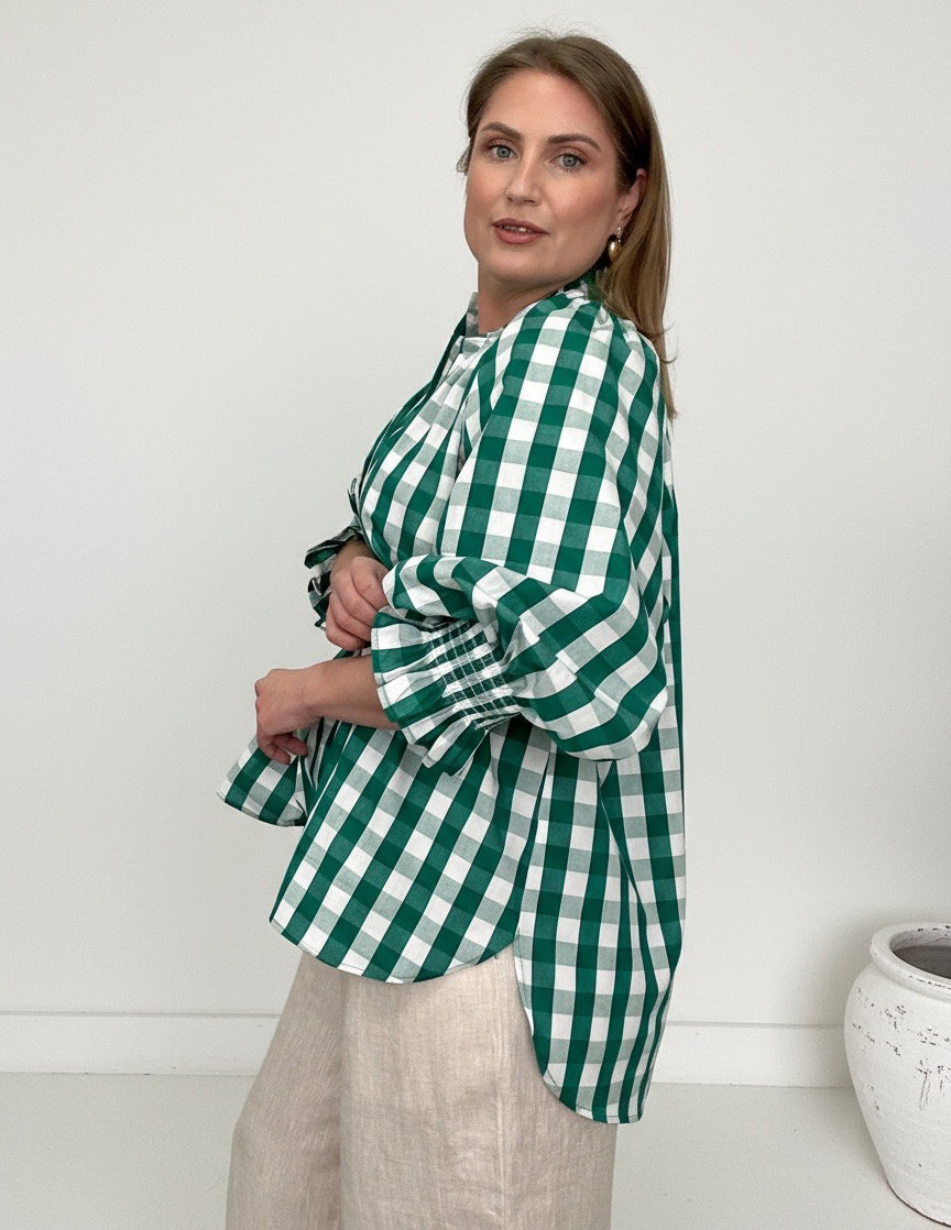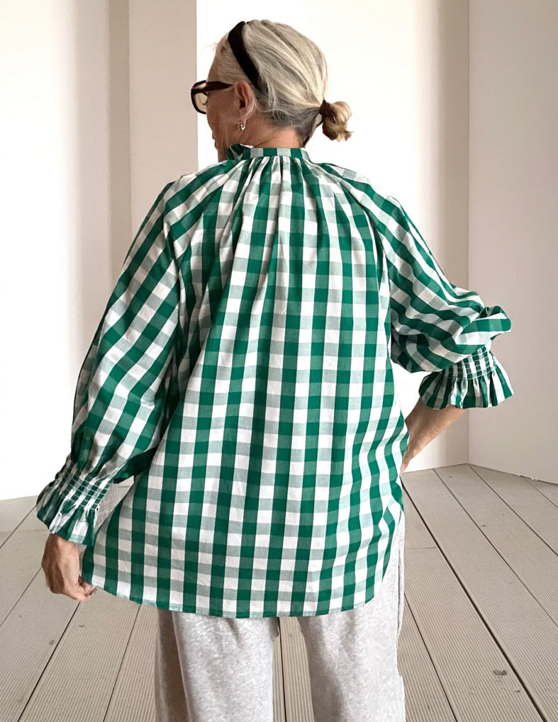 Our signature gingham print is back, featuring a flattering silhouette with elasticated puff sleeves for all-day comfort and effortless style. Available in five colors, it’s perfect for everything from casual brunches to elegant dinner.