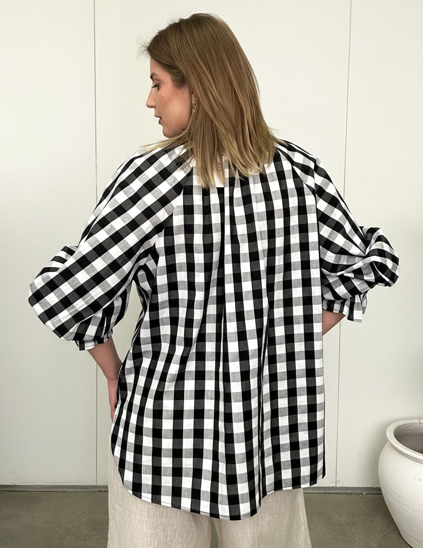 Our signature gingham print is back, featuring a flattering silhouette with elasticated puff sleeves for all-day comfort and effortless style. Available in five colors, it’s perfect for everything from casual brunches to elegant dinner.