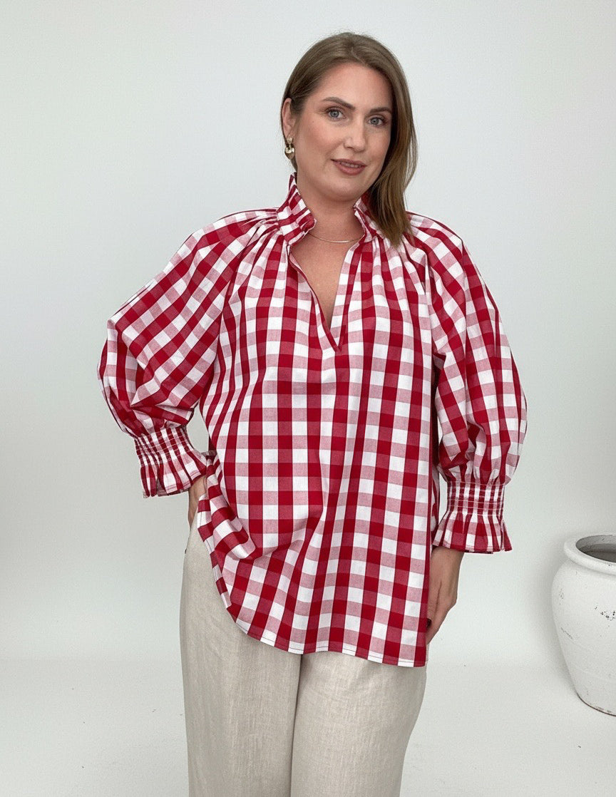 Our signature gingham print is back, featuring a flattering silhouette with elasticated puff sleeves for all-day comfort and effortless style. Available in five colors, it’s perfect for everything from casual brunches to elegant dinner.