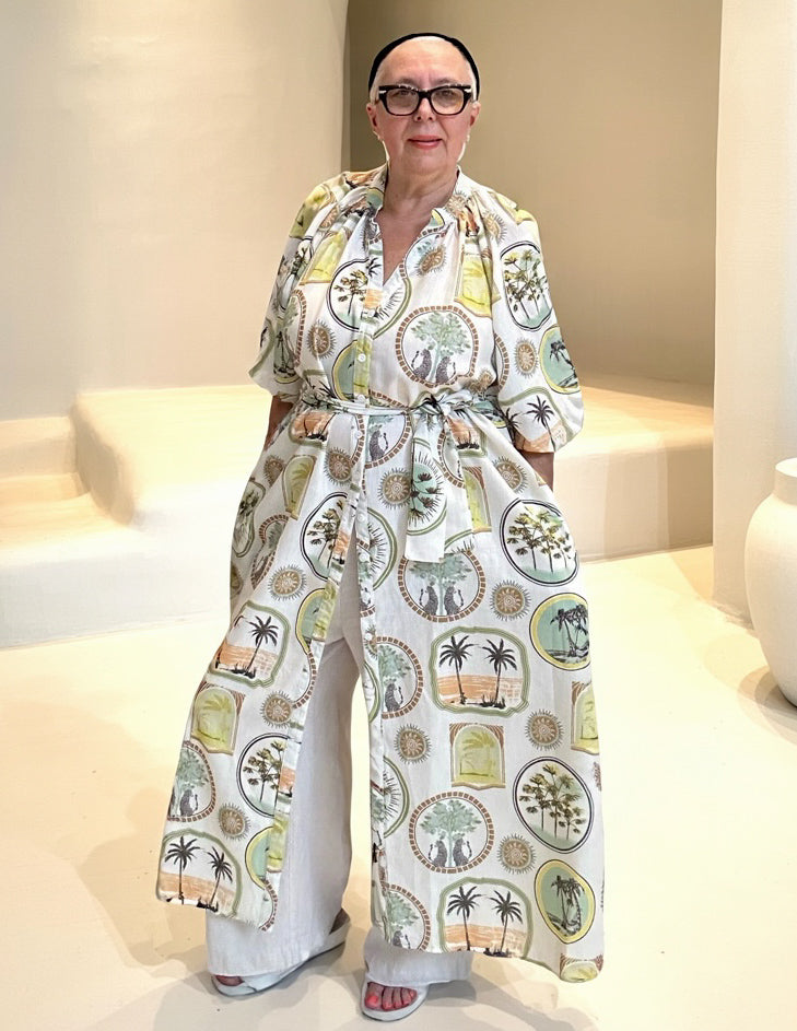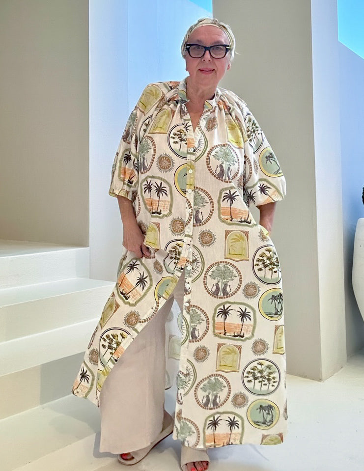 Introducing our new linen blend shirt dress in this season's stunning tropical print—your must-have piece for effortless chic and versatility! Crafted with the perfect balance of comfort and style, this dress feels as amazing as it looks, draping beautifully with a soft, breathable fabric that’s perfect for any occasion. Whether you're dressing it up or keeping it casual, this standout print elevates your look while keeping you super comfortable. Don't miss out on the season's essential wardrobe staple—it's a style game-changer!