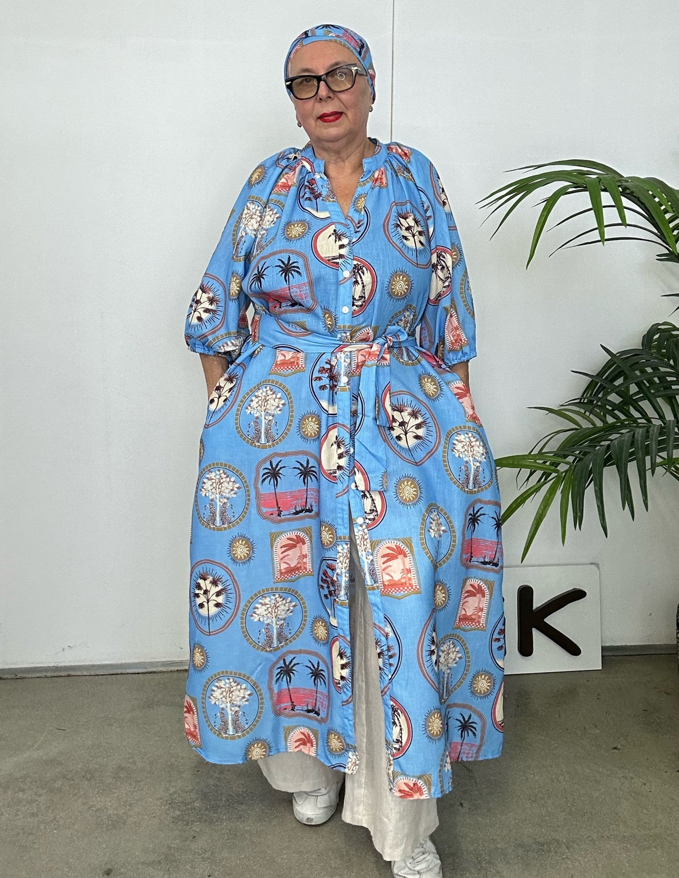 Introducing our new linen blend shirt dress in this season's stunning tropical print—your must-have piece for effortless chic and versatility! Crafted with the perfect balance of comfort and style, this dress feels as amazing as it looks, draping beautifully with a soft, breathable fabric that’s perfect for any occasion. Whether you're dressing it up or keeping it casual, this standout print elevates your look while keeping you super comfortable. Don't miss out on the season's essential wardrobe staple—it's a style game-changer!