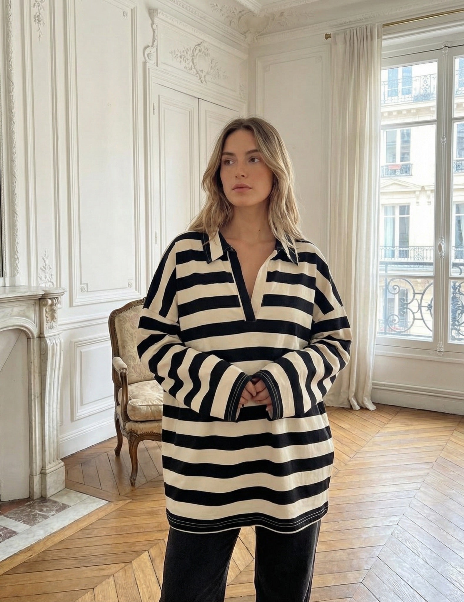 Enjoy reliable comfort and timeless fashion with our new Stripe Polo Top. Its soft and stretchy material ensures a gentle feel throughout your day, making it a delightful choice for any occasion. The collared neckline with its V-front adds subtle distinction, while the classic stripe design brings an effortless touch of style. This fantastic piece offers a flattering line, whilst designed to ensure there is extra room and extra length to give you coverage where it counts for extra comfort. Refresh your wardrobe with this stylish essential and brighten up your daily routine with ease.