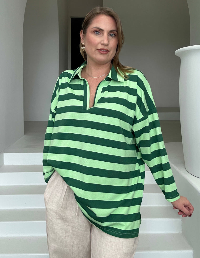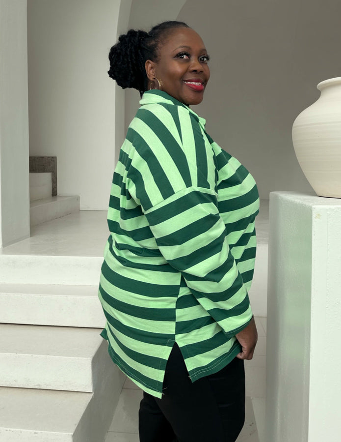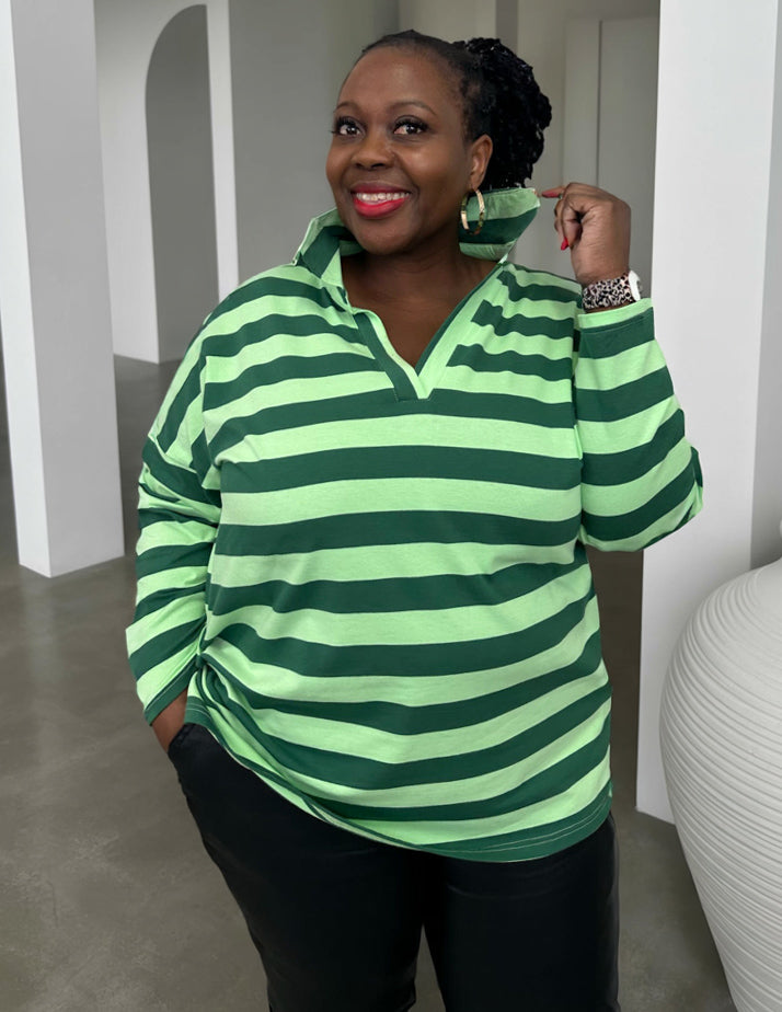 Enjoy reliable comfort and timeless fashion with our new Stripe Polo Top. Its soft and stretchy material ensures a gentle feel throughout your day, making it a delightful choice for any occasion. The collared neckline with its V-front adds subtle distinction, while the classic stripe design brings an effortless touch of style. This fantastic piece offers a flattering line, whilst designed to ensure there is extra room and extra length to give you coverage where it counts for extra comfort. Refresh your wardrobe with this stylish essential and brighten up your daily routine with ease!